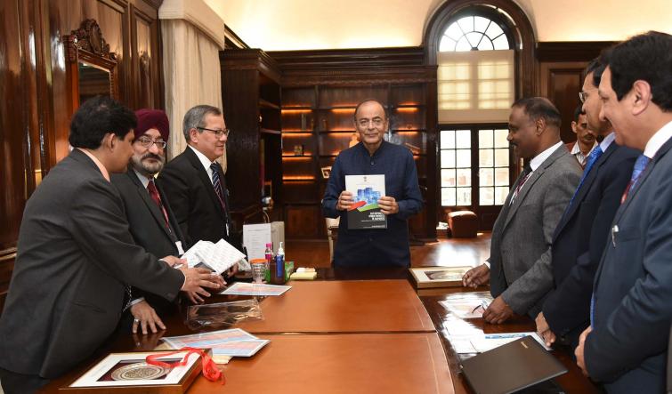 New Delhi, Mar 1 (IBNS): On the occasion of 43rd Foundation Day of the Indian Civil Accounts Service (ICAS), the Controller General of Accounts (CGA) and his team of senior officers along with the Expenditure Secretary, G.C. Murmu called on the Union Minister of Finance and Corporate Affairs, Arun Jaitley in his office here on Friday and briefed him on two recent achievements: Refunds of GST, and Operationalisation of PM-KISAN Scheme.