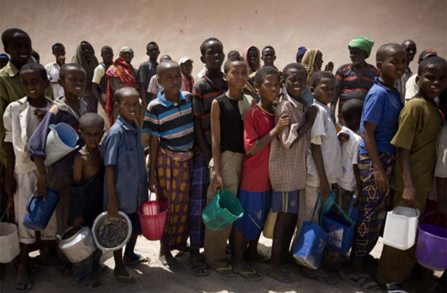 (Boys queue at a UNICEF food distribution point in Mogadishu, Somalia. Photo: UNICEF/Kate Holt)