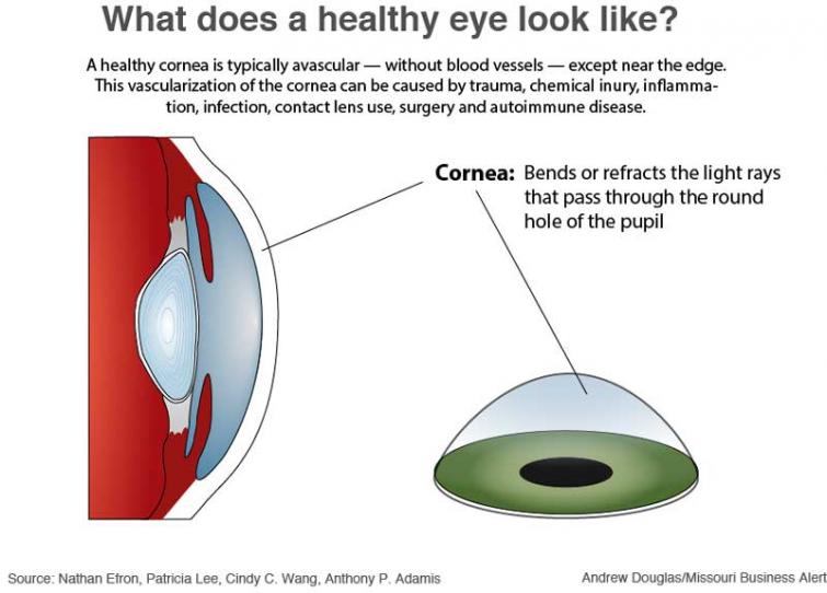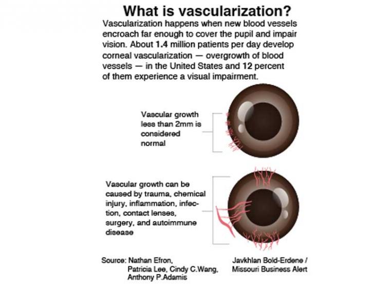 He seeks to treat a disability called “corneal fibrosis” or “corneal vascularization,” variations of a common eye problem. According to a review article published in the journal Eye and Vision, corneal disease is the third most frequent cause of blindness in the world. An estimated 1.4 million people develop corneal neovascularization per year, and 12 percent of them go blind.