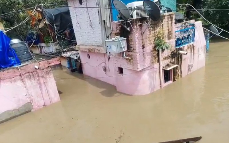 #WATCH | Delhi: Monastery Market and surrounding areas flooded as the water level of the River Yamuna increases, entering residential and commercial areas. pic.twitter.com/dg67fMUEd1