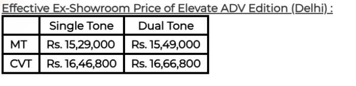 "Safety remains a top priority for Honda, and the Elevate ADV Edition comes equipped with Honda SENSING, an advanced driver-assist system (ADAS) that includes features such as Collision Mitigation Braking System, Lane Keep Assist, Road Departure Mitigation, Adaptive Cruise Control, and Lead Car Departure Notification," the automobile major said in a statement.
