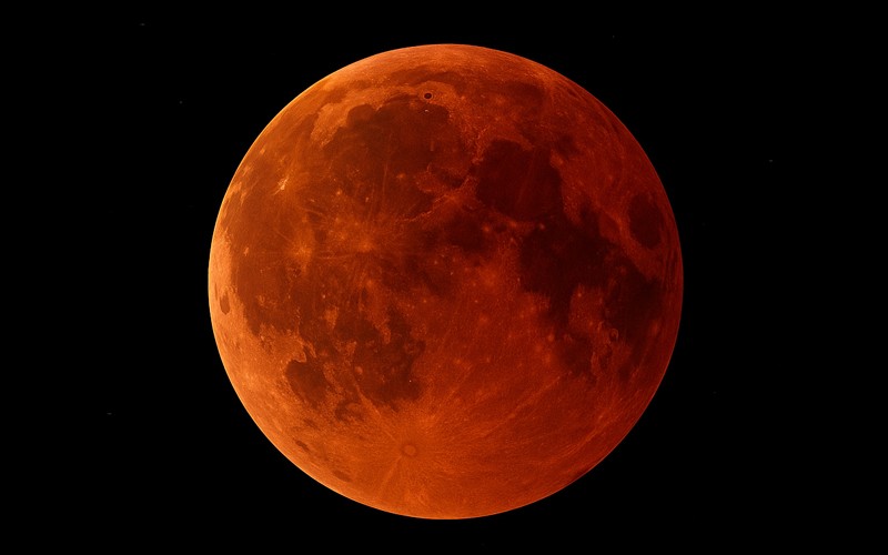 Once it is fully engulfed in the umbra, the lunar disc glows crimson — the striking stage of totality.