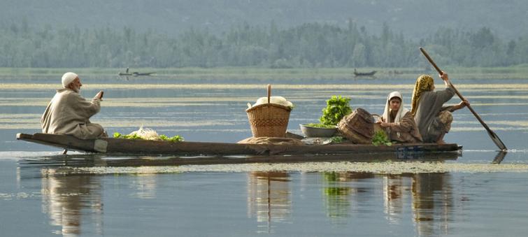 A family transports produce to the maket in Srinagar, Jammu and Kashmir.