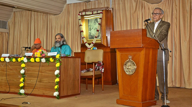 Scientist and educationist Sraddhalu Ranade delivers the SKC Memorial lecture at Ramkrishna Mission Golpark. Photo: PR Team