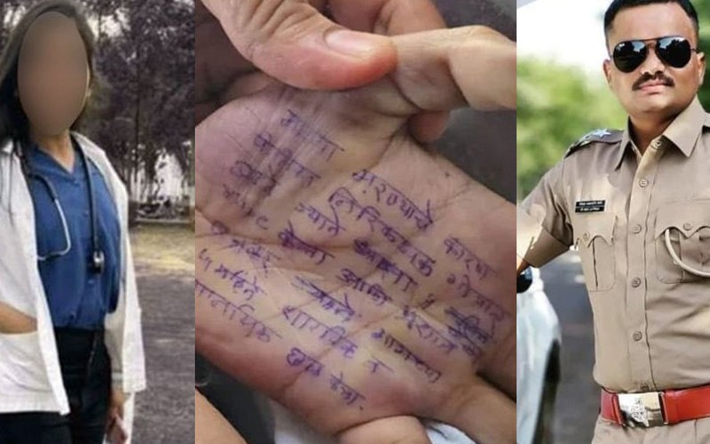 Female doctor left suicide note on her palm accusing sub-inspector Gopal Badane of raping her multiple times. (Photo: @autopsy_surgeon/X| @IndianGems_/X)