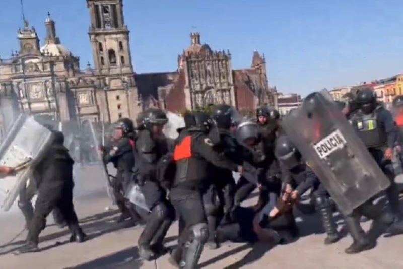 🚨 BREAKING: It's getting WORSE in Mexico. The rioters are now fighting the police and police are KICKING a rioter who fell to the ground.