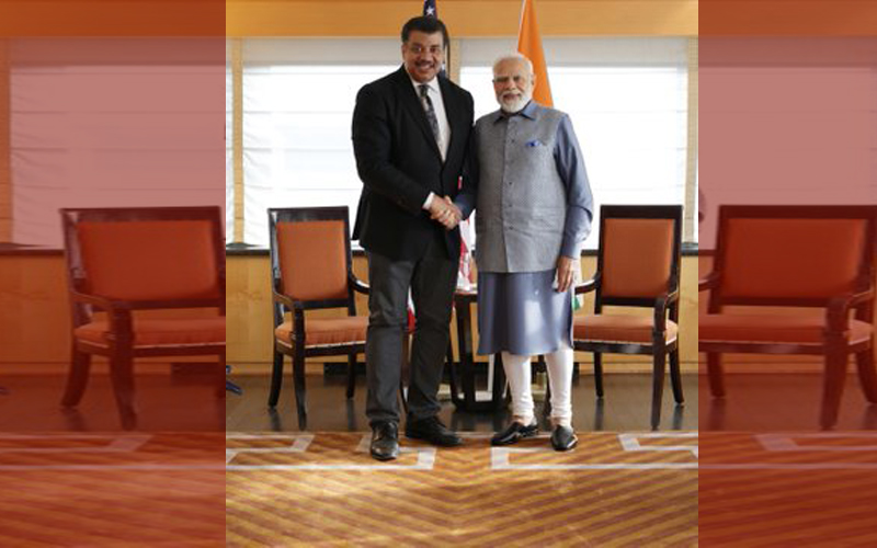 New York: Indian PM Narendra Modi met Neil de Grasse Tyson, leading American astrophysicist, author and science communicator, on Wednesday, in New York, USA.