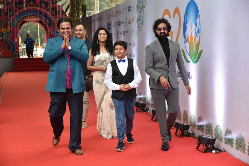 Director Pratik Sharma, Producer and Screenplay Writer Asmita Sharma, Actor Akhilendra Chhatrapati Mishra and Master Ath Sharma along with cast and crew of feature film ‘Lotus Blooms’ felicitated at IFFI on Nov 23, 2022.