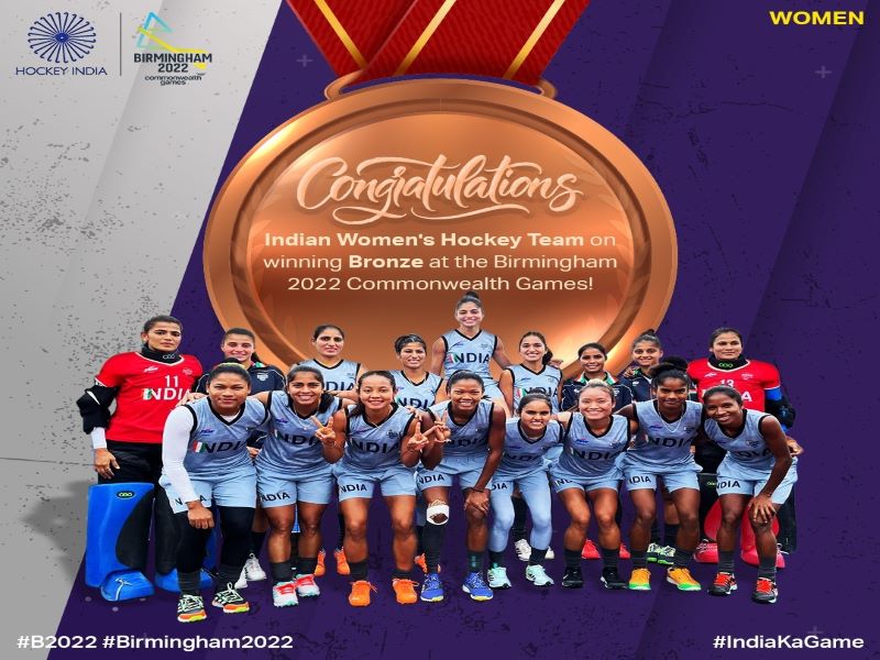 Birmingham: Indian women's hockey team Sunday won the bronze medal in the Commonwealth Games 2022, defeating New Zealand by 2-1 in the penalty shootout.