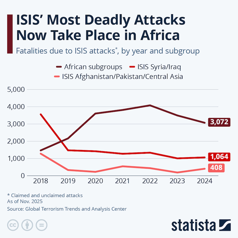 While the collapse of ISIS’s territorial caliphate in 2019 weakened the organisation globally, it also dispersed its operational centres. Fighters retreated into deserts, border regions and ungoverned spaces.