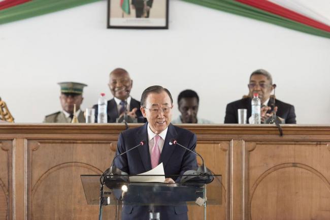“Your elections last year represented an important milestone that ended five years of political crisis,” Ban said in an address to the joint congress of both the Senate and the National Assembly of Madagascar, a country which lies off the southeast coast of Africa.