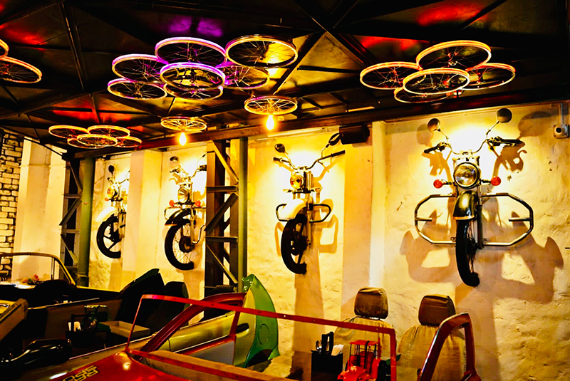 A new entrant in the F&B scene, Car Spa Bistro, located at 20/1B, East Topsia Road, Mirania Gardens, Kolkata, is a 55 seater bistro spread across 2000sq.ft (approximately). The interiors have an interesting look with recycled vehicle parts forming a part of their thematic design.