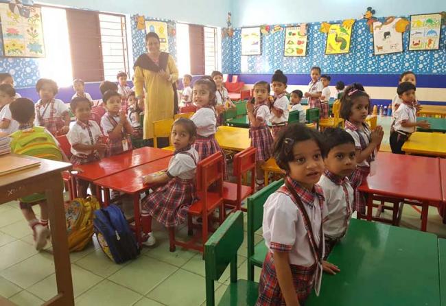 The pre-primary section or The Kids World has an innovative playschool for children between 2 to 4 years where classrooms are marked in different colours which the tender minds can immediately register. The themes in these classrooms are changed frequently and aimed at developing cognitive skills, arouse curiosity, inculcate good habits, discipline, team spirit, interactivity and the flair to ask questions.