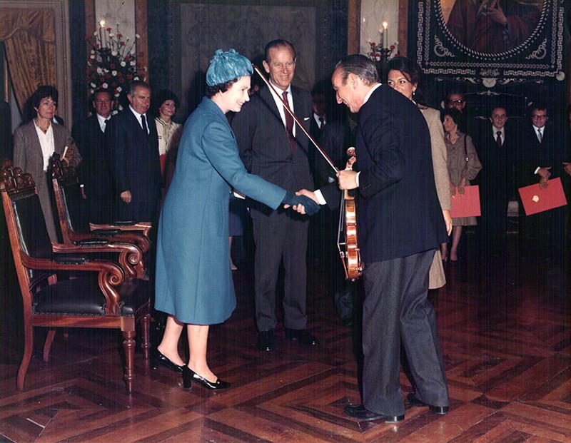 Vintage photo from Angelo Firpo's ceremony of Officer of the Most Excellent Order of the British Empire (OBE) with Royalty.