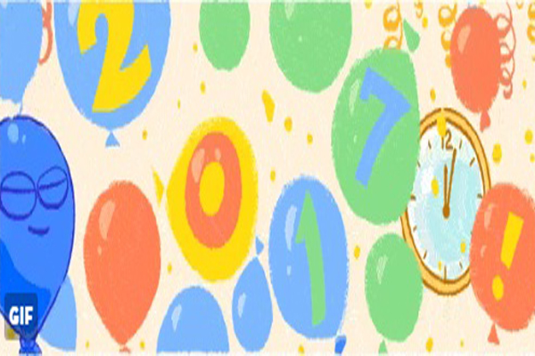 New York, Jan 1 (IBNS): With a doodle showing dropping of balloons, popular search engine Google on Sunday celebrated new year.