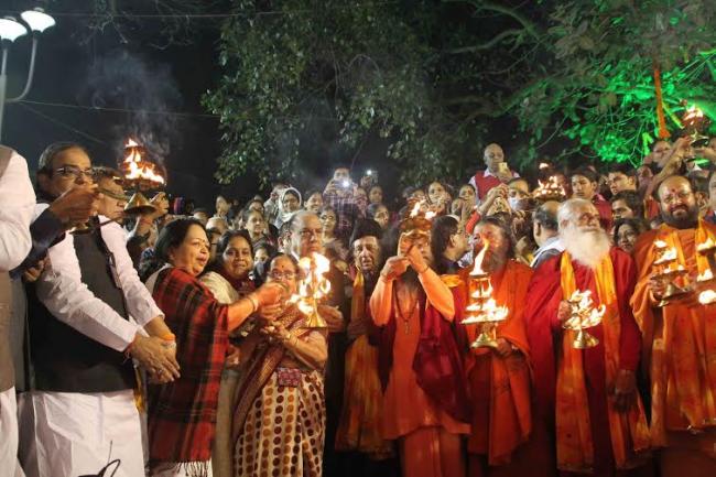 The Aarti took place in the presence of Swami Chidanand Saraswati (Pujya Muniji - President & spiritual head of the Parmarth Niketan Ashram of Rishikesh), alongwith his 25 holy priests. 1800 Diyas were also released at the same time in the holy Ganges.