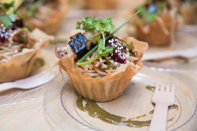 Music heralded the arrival of the first of the five course meal -- Peruvian Root Veggie Ceviche -- a typical seafood dish modified with root vegetables and served with quinoa tossed, feta cheese coated, limoncello vinaigrette dressing.