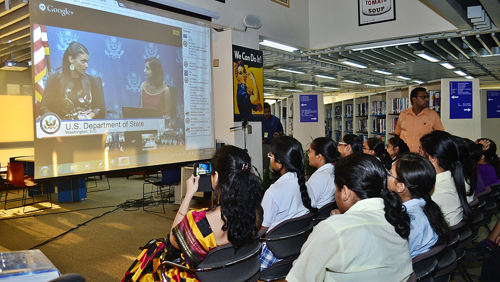 Students from National English School, Pailan World School, Mahadevi Birla World Academy and La Martiniere for Girls interacted with Davuluri at the US Consulate Kolkata.