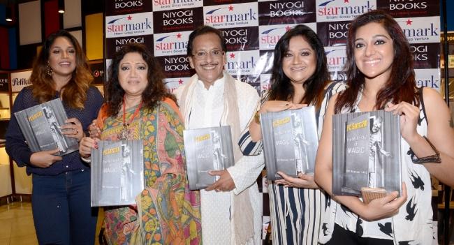 Image Caption: P.C.Sorcar Junior releases the book on his legendary father at Starmark surrounded by his family members. His wife and magician daughter Maneka besies two other daughters- popular actresses Moubani and Mumtaz- are also seen in the frame at the release function.