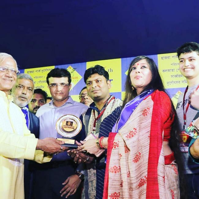 Former Indian cricket captain and current Cricket Association of Bengal (CAB) president, Sourav Ganguly, was present to hand over the award to Hazra Park Durgotsav.