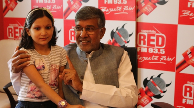 Satyarthi visited the Red FM studio in Kolkata to promote this cause along with RJ Praveen.