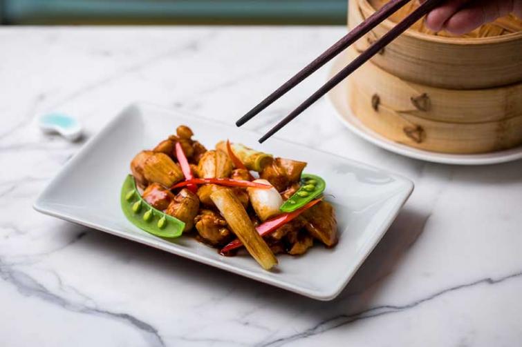 From the wok dishes, you may try the stir fry chicken in chilli oil with sugar snap, shallot and leek or the steamed Indian sea bass in superior soy sauce.