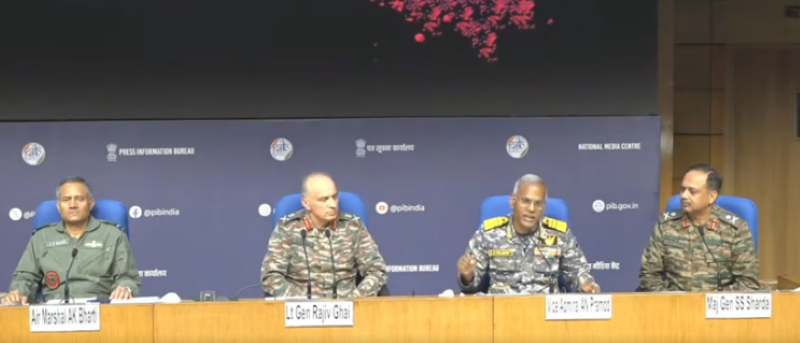 Indian Army holds special press briefing on Operation Sindoor. Photo Courtesy: PIB Screengrab