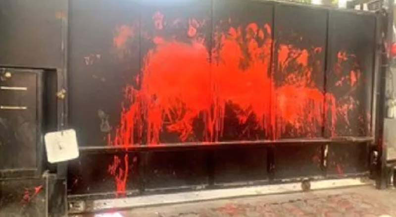 They were carrying a small box of paint from which they threw paint outside the door. In the imbroglio, a boom barrier arm was also found vandalised as also a CCTV camera, Delhi Police said.