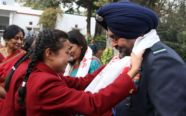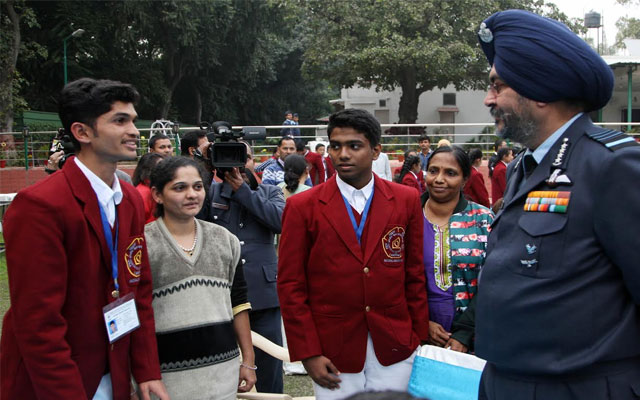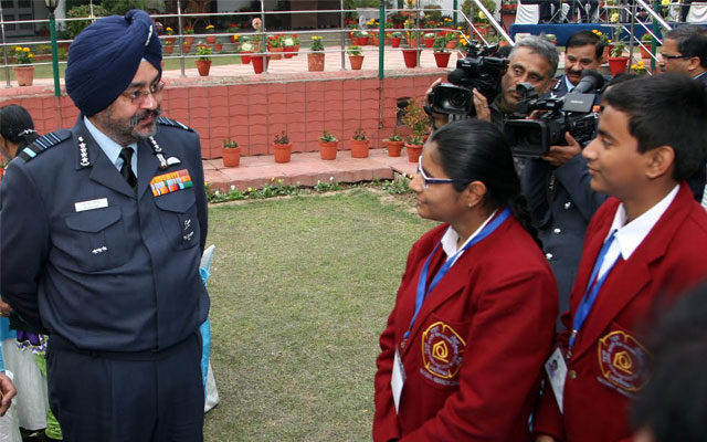 Chief of the Air Staff, Air Chief Marshal BS Dhanoa PVSM AVSM YSM VM ADC interacting with children who are awardees of the National Bravery Award for year 2016 at New Delhi on Tuesday (jan 24, 2017).