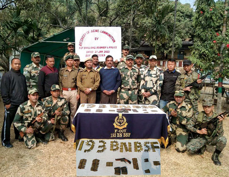 Acting on specific input, BSF, Meghalaya Frontier conducted a joint operation with Meghalaya police and recovered the arms and ammunition.