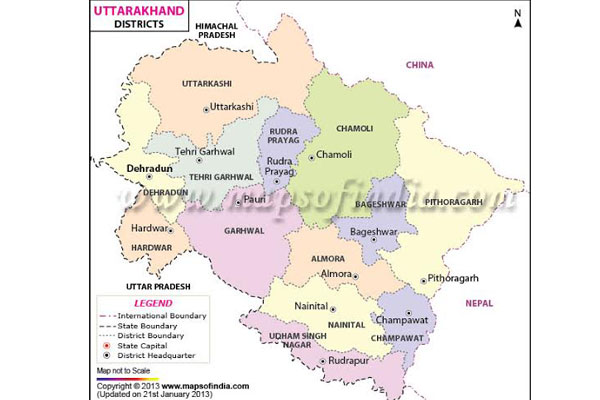 The state of Uttarakhand has a 350 km long border with China.