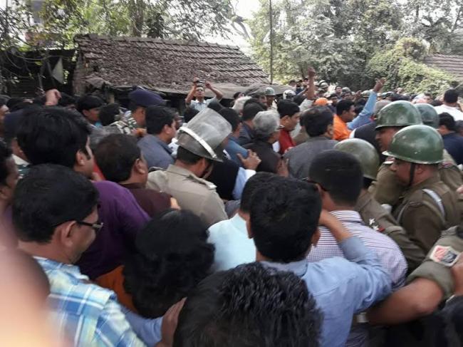 Leaders of BJP and Congress went to Dhulagarh to witness violence hit area's situation on Tuesday and Monday respectively and both teams were prevented by the police from entering the village.