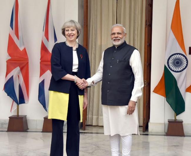 Prime ministers Narendra Modi and Theresa May met on Monday in New Delhi for bi-lateral talks.