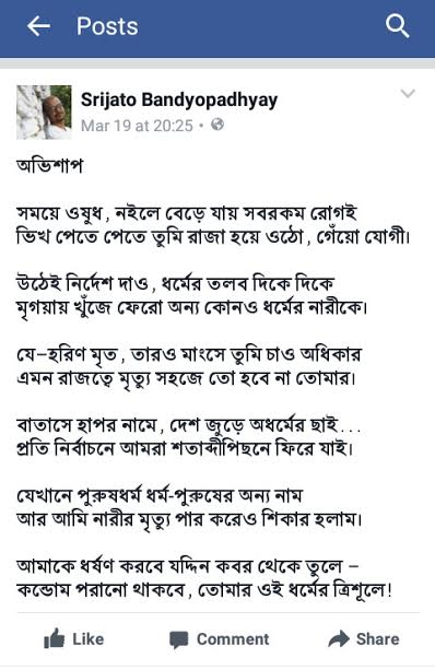 According to reports, after Yogi Adityanath was selected as the Chief Minister of newly elected BJP-led government in Uttar Pradesh, poet Srijato wrote a poem and posted it on his Facebook wall on Sunday late evening.