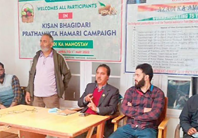 Kulgam/IBNS: The Department of Horticulture Zone Kulgam on Tuesday started a campaign of KCC saturation drive under ‘Azadi Ka Amrit Mahotsav’ with the theme ‘Kisan Bhagidari Prathmikta Hamari’.