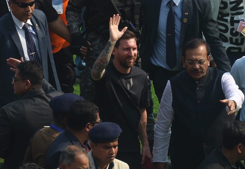 Earlier Lionel Messi set Kolkata ablaze on Day 1 of his much-anticipated GOAT Tour in India, unveiling a towering 70-foot statue of himself and sharing a high-profile meeting with Bollywood superstar Shah Rukh Khan.