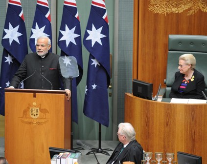 Image: The Prime Minister, Narendra Modi addressing the joint session of Parliament of Australia, at Parliament House, in Canberra, Australia on November 18, 2014.