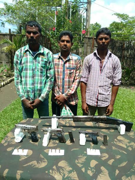 Security personnel had recovered one 0.22 mm factory made pistol with magazine and three lives rounds, one 7.65 mm factory made pistol with magazine and three lives rounds, one 9 mm factory made pistol without magazine and two lives rounds and one country made single shot gun in possession from them.