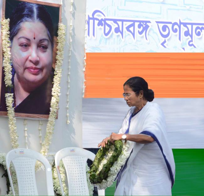 Kolkata, Dec 6 (IBNS): West Bengal Chief Minister Mamata Banerjee on Tuesday paid homage to late former Tamil Nadu Chief Minister J Jayalalithaa during the Sanhati Dibas" programme here.