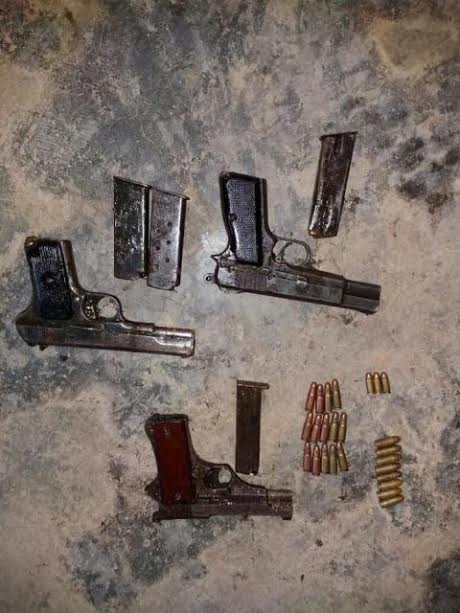 Security personnel recovered one 7.65mm pistol with three rounds of ammunition, a 9mm pistol with eight rounds of ammunition, one Chinese-made pistol with 18 rounds of ammunition and four magazines.