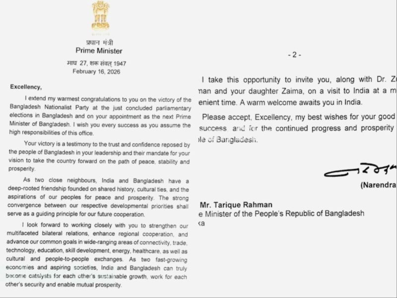 PM Modi congratulates his Bangladesh counterpart Tarique Rahman, extends invitation to visit India