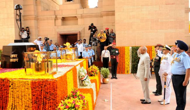 President Kovind pays tribute at the Amar Jawan Jyoti in New Delhi