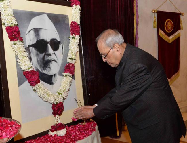 New Delhi, Feb 8 (IBNS): President Pranab Mukherjee paid floral tributes to Dr. Zakir Hussain, former President of India on the occasion of his birth anniversary at Rashtrapati Bhavan on Wednesday.