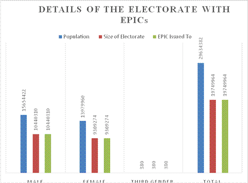 Going by the Electoral Photo ID Cards (EPIC) issued, the number of male and female electors are evenly spread and there are 380 electors from the Third Gender category.