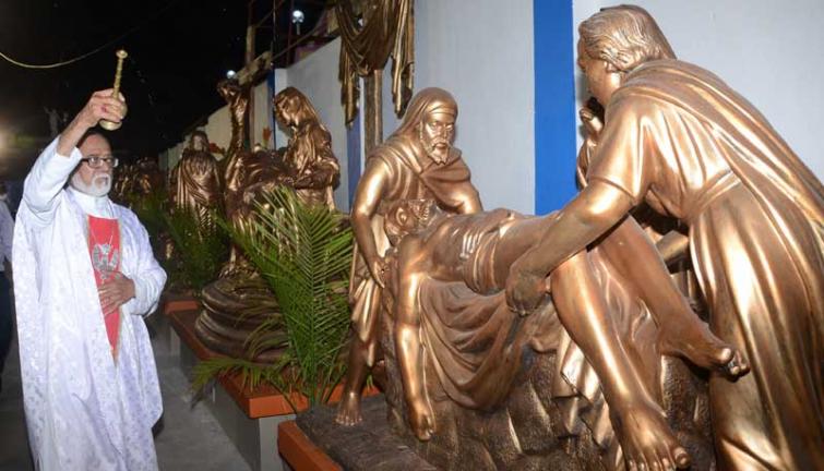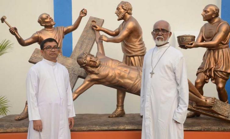 Kolkata, Apr 9 (IBNS): The Sacred Heart Church of Thakurpukur, under the Baruipur diocese of Roman Catholic Order, has installed a Station of The Cross as a run-up to the Easter celebrations this year. The Station of The Cross – depicting the crucifixion of Christ - was formally inaugurated on Sunday by Salvadore Lobo, Bishop of Baruipur Cathedral of Immaculate Heart of Mary, in the presence of guests and dignitaries.