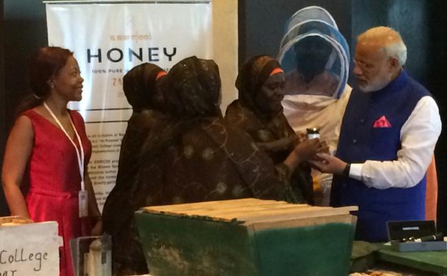 Solar Mamas present a skill demonstration to PM Modi in Dar-es-Salaam