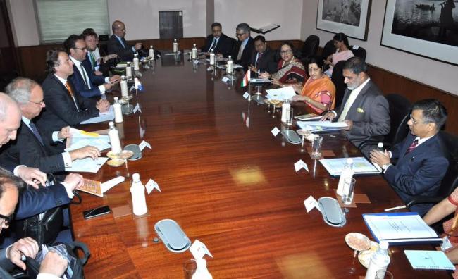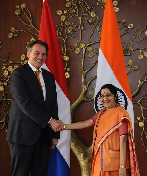 MEA spokesperson Gopal Baglay tweeted: "Hosting a valued partner. EAM @SushmaSwaraj & Mr. Bert Koenders, Foreign Minister of the Netherlands discuss bilateral coop'n."