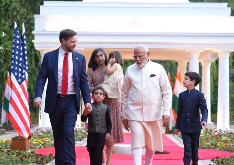 The Prime Minister personally welcomed JD Vance and his family at his official residence in Delhi.
