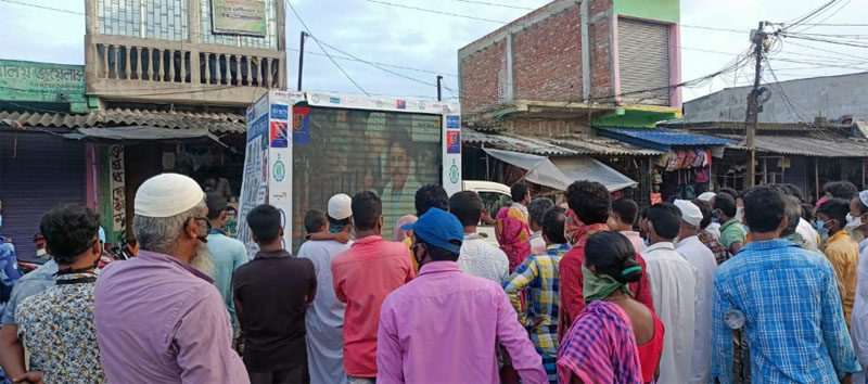 The vehicle was accompanied by local police officers who used to listen to people to sort out their problems. NGO members were present with the tableau with a sanitizing machine to sanitize the houses of covid patients.