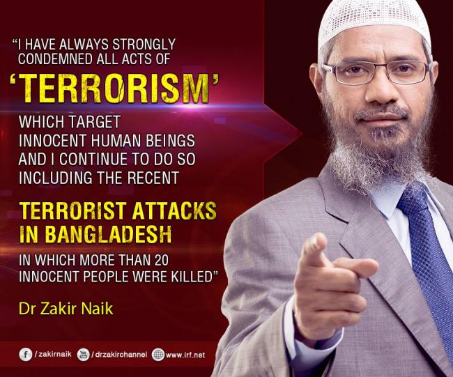 "Bangladesh on July 10 banned IRF-owned Peace TV following reports that at least two of the five youths, who killed 22 persons, mostly foreigners, at a cafe in Dhaka's Gulshan on July 1, had been his followers on the social media," bdnews24.com reported.